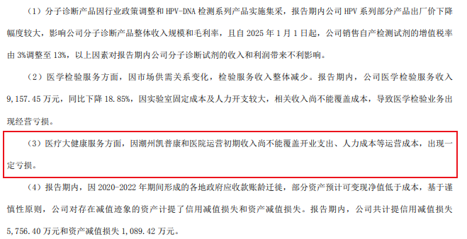 此外,2025年以来,公司销售自产检测试剂的增值税率由3%调整至13%,也影响公司分子诊断产品的收入规模。