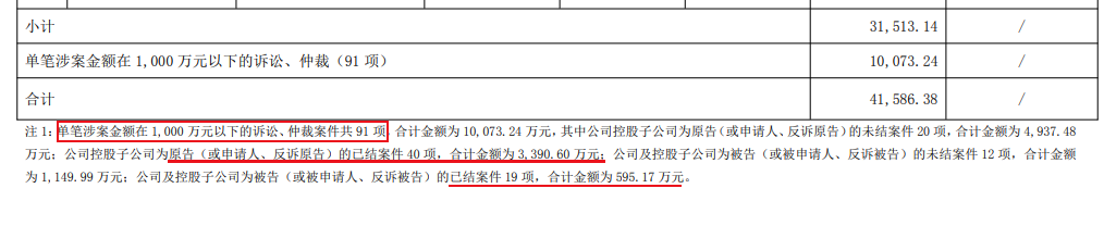 到目前为止,单笔涉案金额1000万以下诉讼,凯普生物作为原告的诉讼和仲裁案件,已结案40项,合计金额3390.60万元。