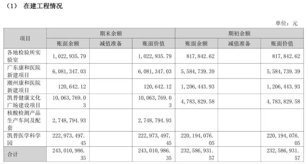 值得一提的是,凯普生物还在大力建设医院,布局医疗大健康服务。但据今年中报披露,因潮州凯普康和医院运营初期收入尚不能覆盖开业支出、人力成本等运营成本,出现一定亏损。
